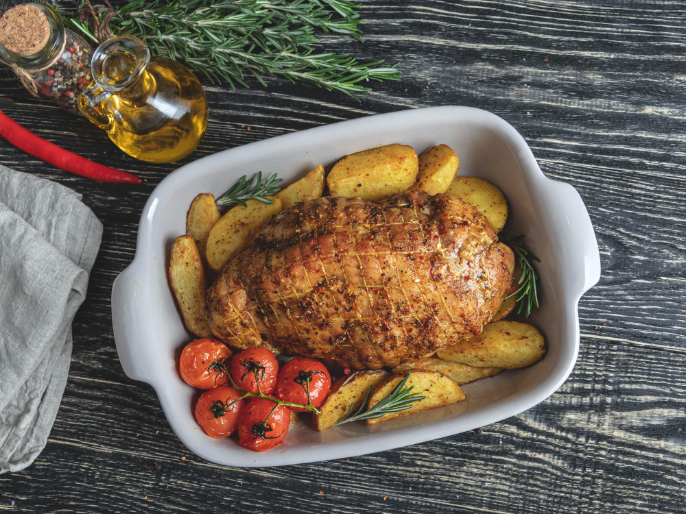 4-5kg Boneless Turkey Crown 2kg Luxury Loin Ham 2 x 24 Chipolatas 2 x 1lb Pork & Sage Stuffing 2 x 200g Streaky Bacon 2 Atkins & Potts Turkey Gravy